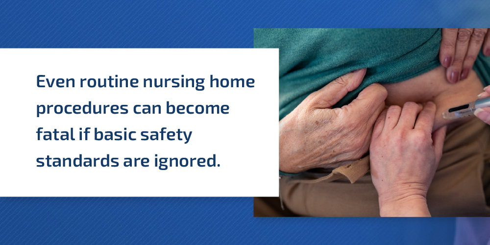 Nursing home residents often require medical procedures as part of their daily care. Many of these procedures are routine when they are done correctly. But when nursing homes don’t follow safety standards, even simple procedures can turn deadly.